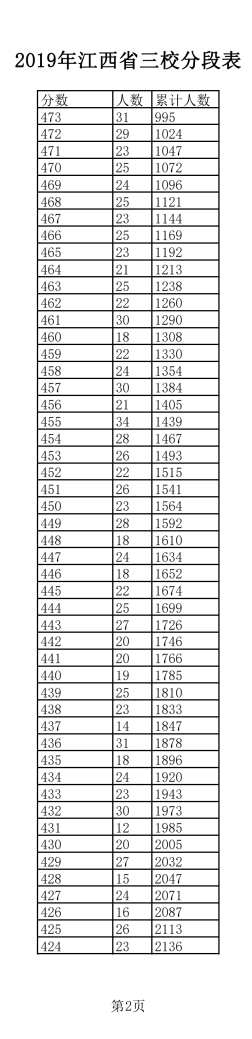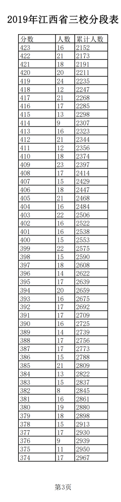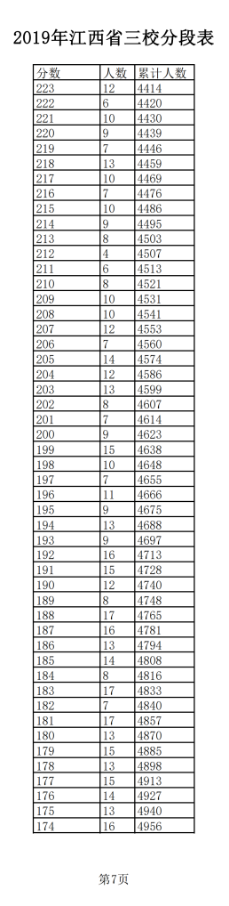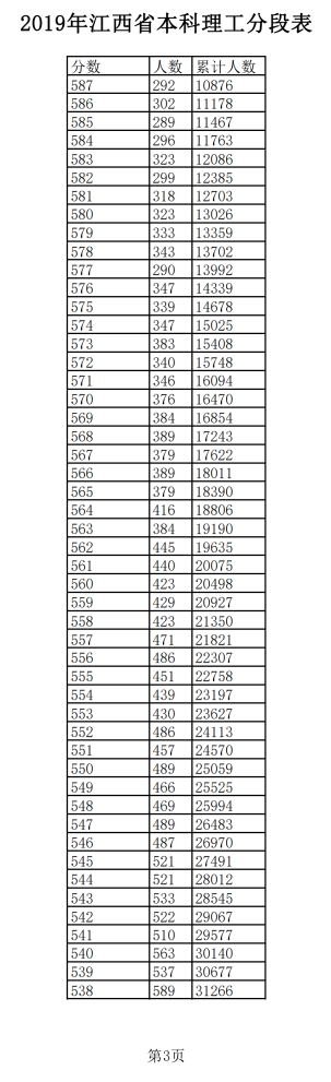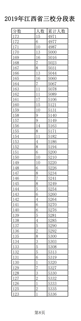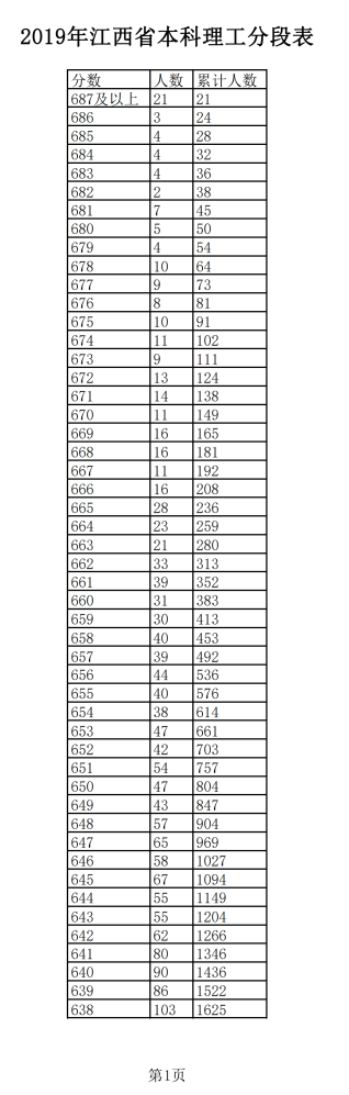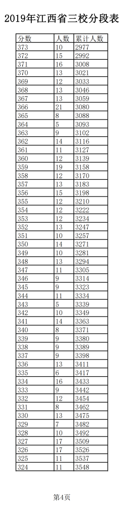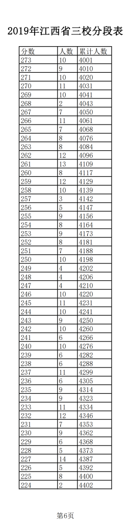 2019年江西普通高考文史、理工、三校成績分數(shù)段表