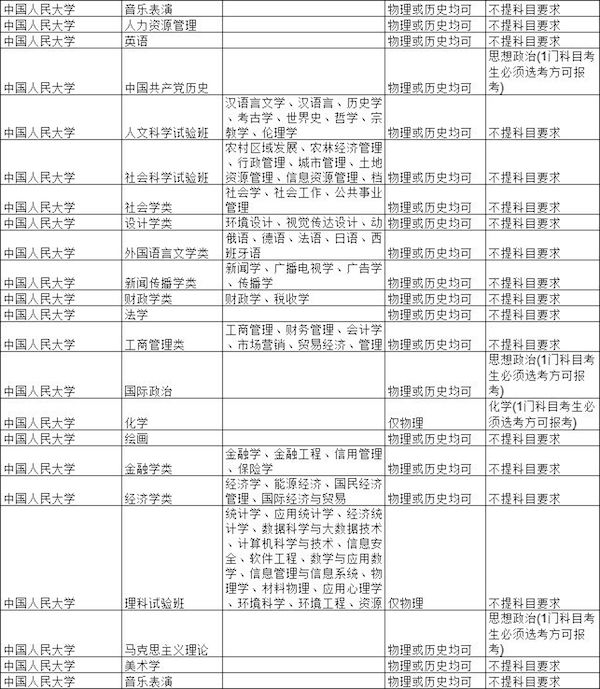 高校各專業(yè)根據(jù)實(shí)際從再選科目中選擇1科、2科或“不提科目要求”。
