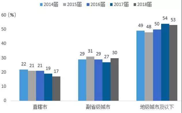 圖6 2014~2018屆本科畢業(yè)生就業(yè)城市類(lèi)型分布變化