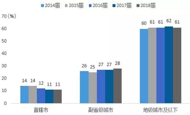 圖7 2014~2018屆高職高專(zhuān)畢業(yè)生就業(yè)城市類(lèi)型分布變化