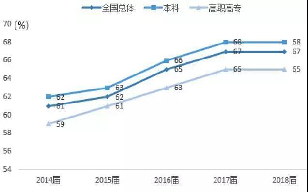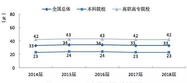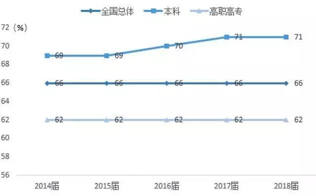 圖12 2014~2018屆大學(xué)畢業(yè)生的工作與專(zhuān)業(yè)相關(guān)度變化趨勢(shì)