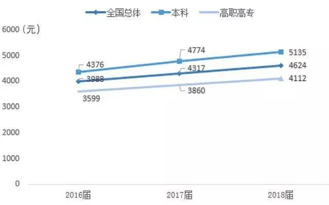 就業(yè)滿(mǎn)意度是由就業(yè)的畢業(yè)生對(duì)自己目前的就業(yè)現(xiàn)狀進(jìn)行主觀判斷,可能會(huì)受到薪資待遇、行業(yè)發(fā)展、職業(yè)發(fā)展空間、工作環(huán)境、工作壓力等多方面因素影響,也與畢業(yè)生自身經(jīng)歷和感受密切相關(guān)。2.2018屆大學(xué)畢業(yè)生月入4624元,應(yīng)屆畢業(yè)生薪資持續(xù)增長(zhǎng)