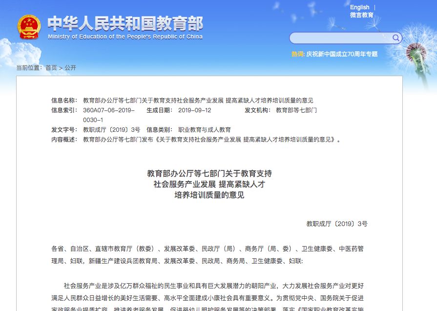 對此,教育部、國家發(fā)展改革委、民政部、商務(wù)部、國家衛(wèi)生健康委、國家中醫(yī)藥局、全國婦聯(lián)辦公廳就教育支持社會服務(wù)產(chǎn)業(yè)發(fā)展,提高家政、養(yǎng)老、育幼等領(lǐng)域緊缺人才培養(yǎng)培訓(xùn)質(zhì)量提出如下意見。