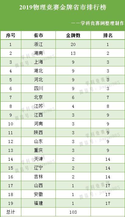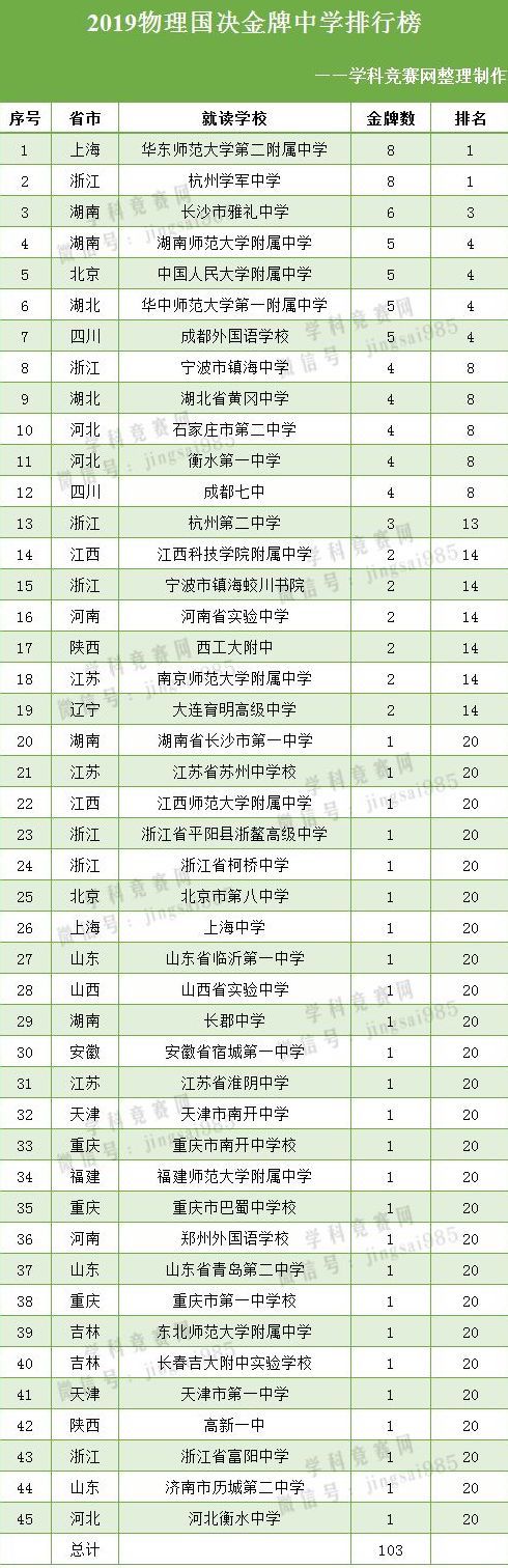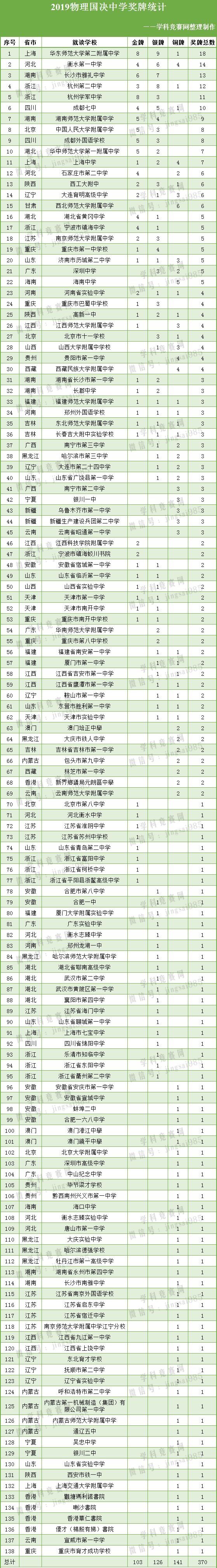 三、2019物理競賽中學(xué)獎牌統(tǒng)計