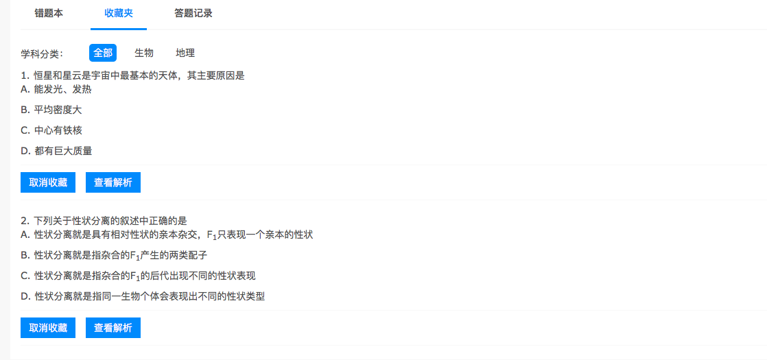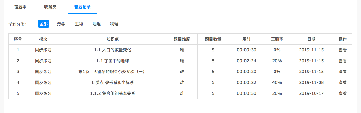 錯題本:可以“分科目、分章節(jié)”查看錯題記錄。