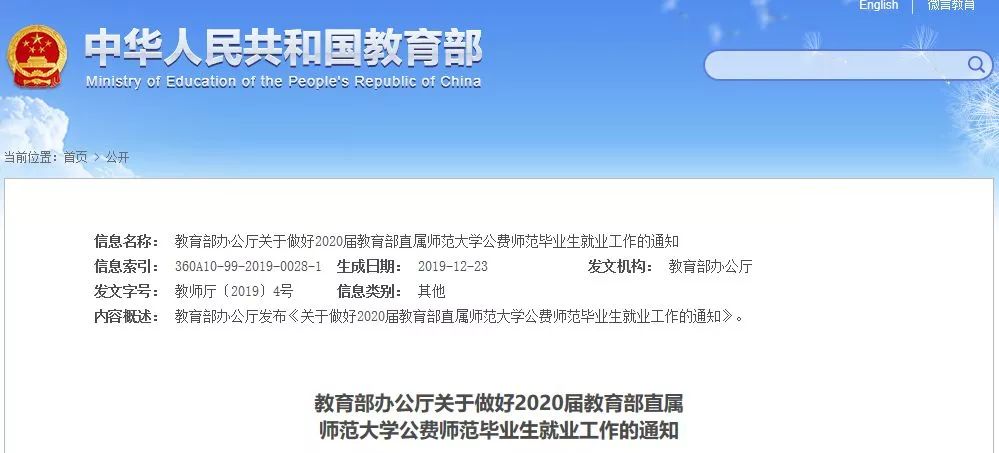 日前,教育部辦公廳印發(fā)關(guān)于做好2020屆教育部直屬師范大學公費師范畢業(yè)生就業(yè)工作的通知,要求保證2020屆部屬師范大學公費師范畢業(yè)生全部安排到中小學校任教。