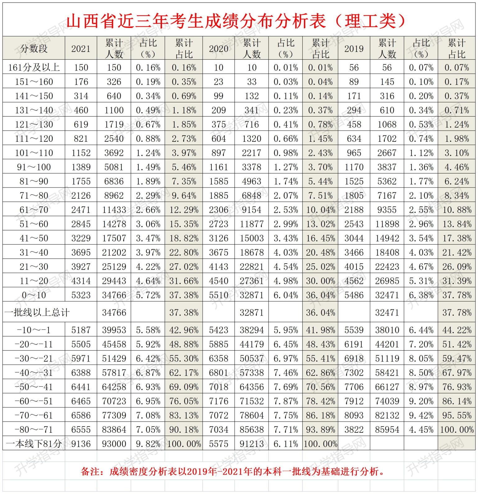 2021年山西成績(jī)密度分析