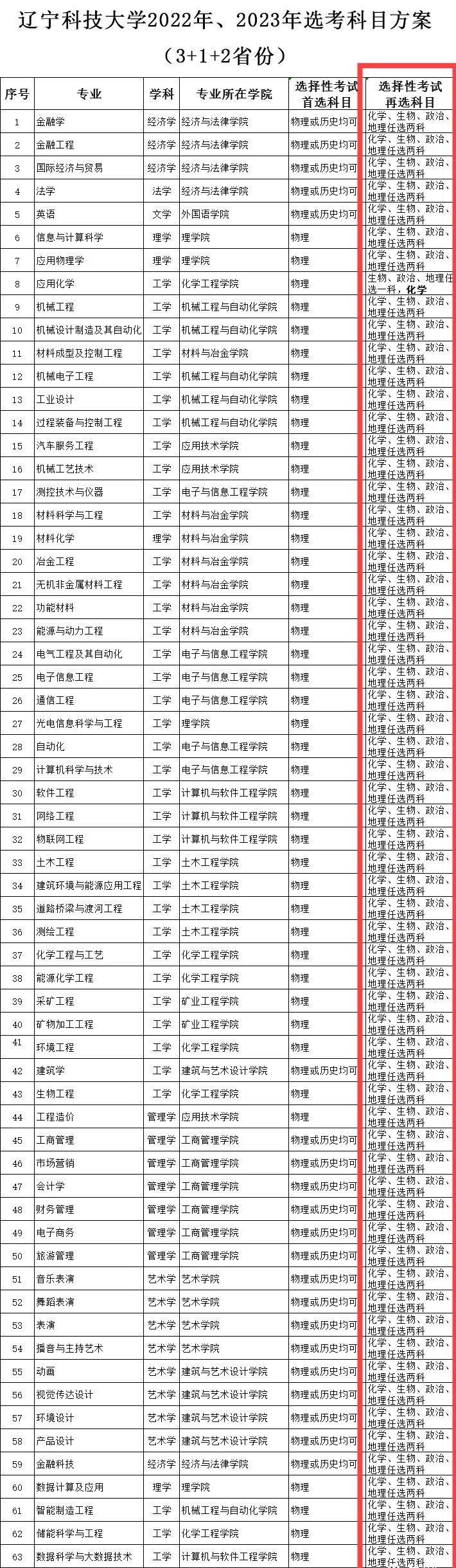 具體調(diào)整的科目數(shù)量為:遼寧科技大學(xué)2024版方案中要求“化學(xué)”科目的專業(yè)數(shù)量為44個,占所有專業(yè)的67.69%;2022、2023版中要求化學(xué)的專業(yè)數(shù)量僅為1個。