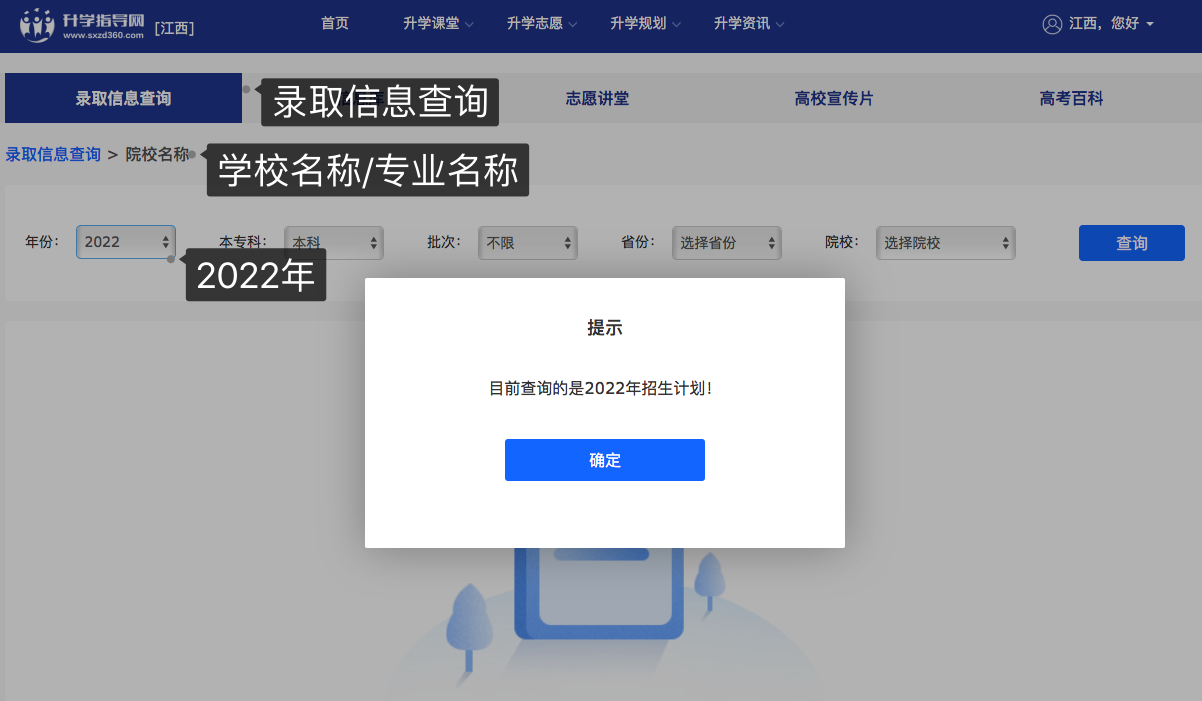 查詢方式:①院校信息庫(kù);②錄取信息-專業(yè)名稱/院校名稱;