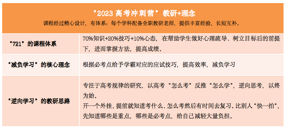 針對高三,升學(xué)指導(dǎo)網(wǎng)上線了“2023高考沖刺營”分為“高中知識(shí)串講、高三復(fù)習(xí)方法、2022真題解析”等主題。共計(jì)23課時(shí),希望能夠幫助你節(jié)省時(shí)間、提高效率,在這個(gè)寒假完美逆襲。