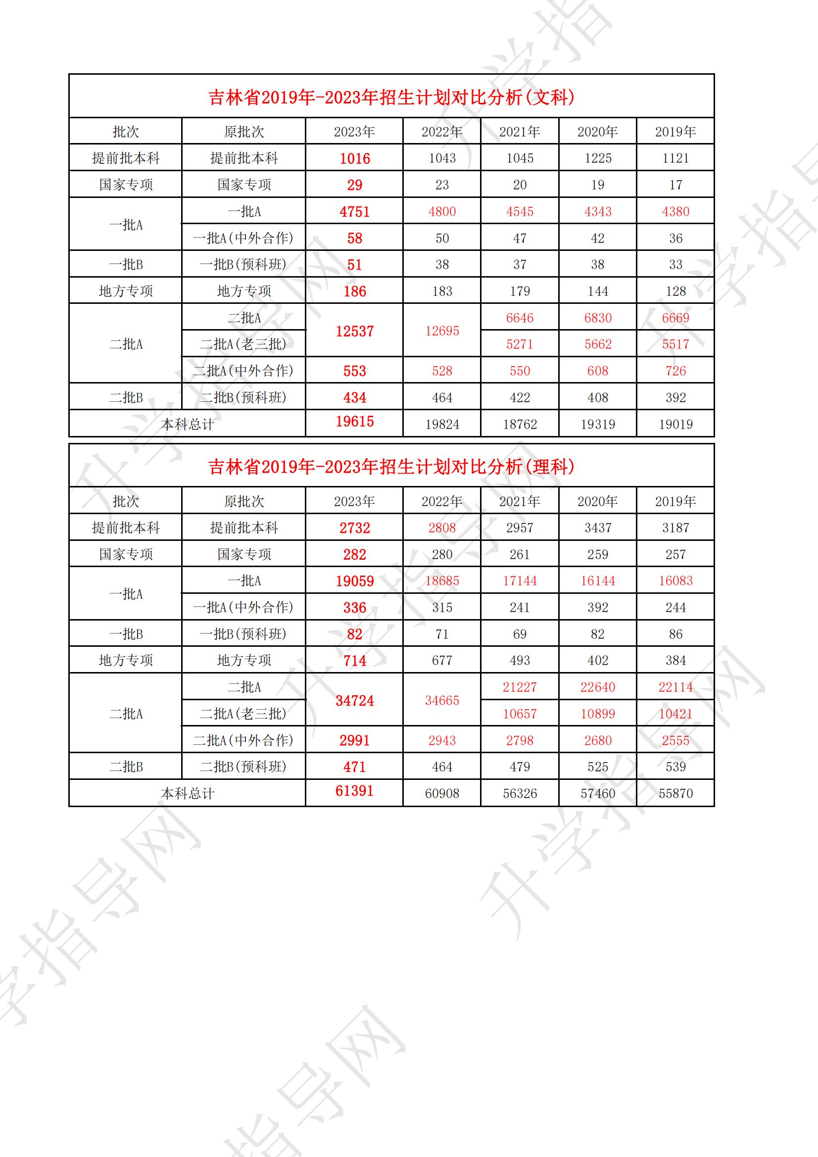 吉林省19-23年招生計劃分析