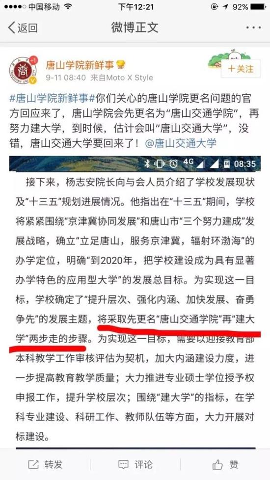 這位負責(zé)人強調(diào),對于近期網(wǎng)上出現(xiàn)的反映唐山學(xué)院更名涉嫌校名侵權(quán)的問題,教育部高度重視,并將在委托專家考察和評議等審批環(huán)節(jié),結(jié)合學(xué)校的歷史沿革、文化傳承、層次類型、辦學(xué)定位、學(xué)科特色等,對擬使用名稱的規(guī)范性、合法性進行充分論證和審核,確保其使用名實相符的名稱,妥善保護相關(guān)高校的合法權(quán)益。