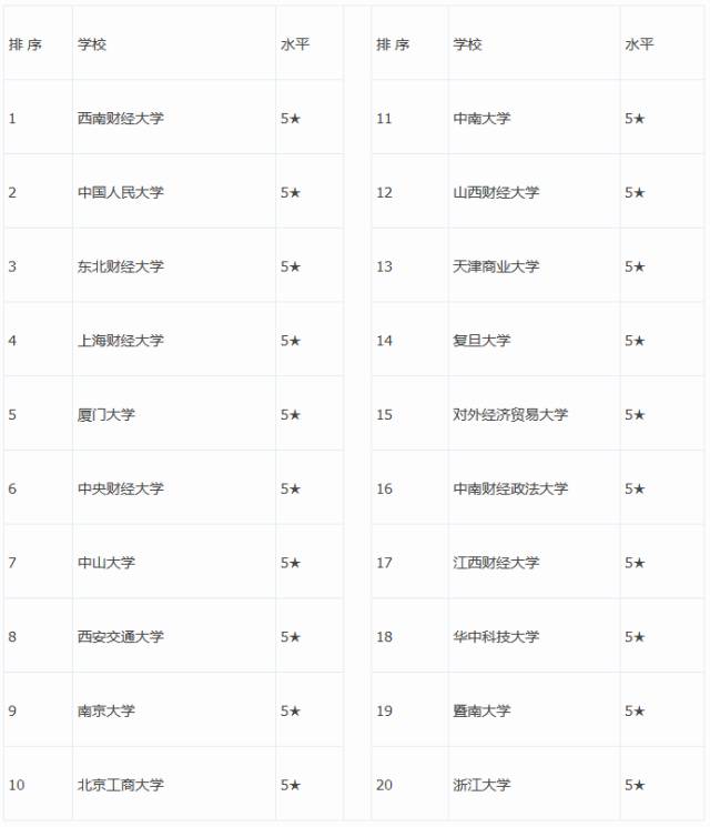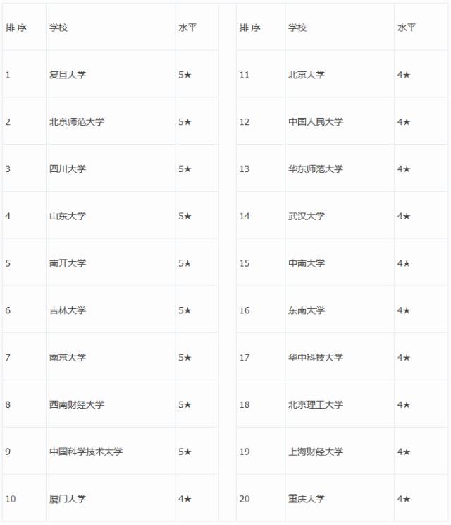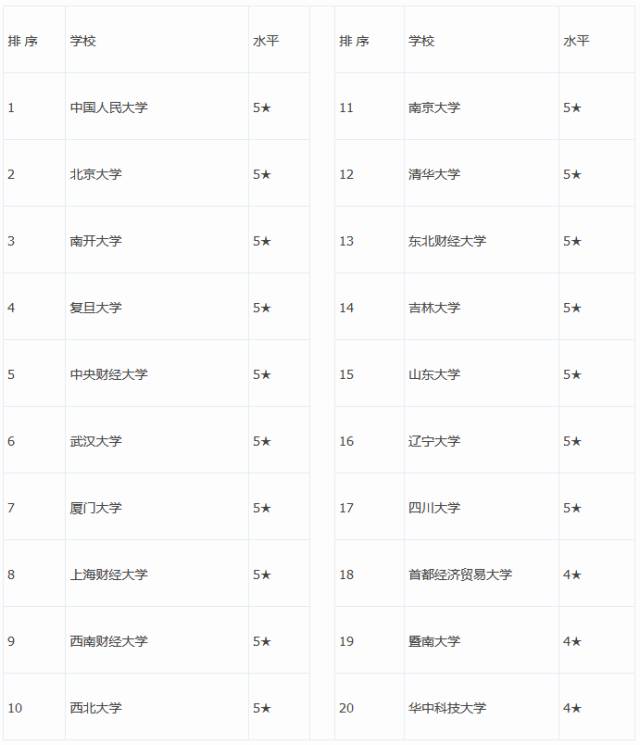 ○ 2015-2016年經(jīng)濟學(xué)專業(yè)大學(xué)排名: