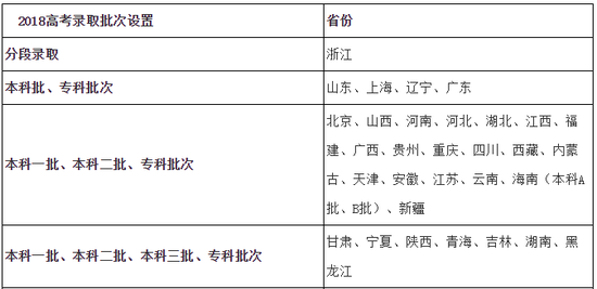 那么,各省市2018年高考錄取批次是怎樣設(shè)置的,匯總?cè)缦拢?/span>