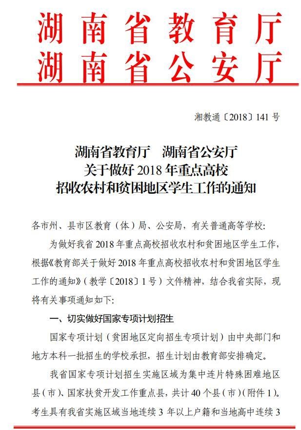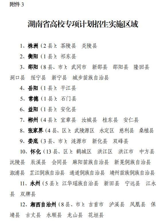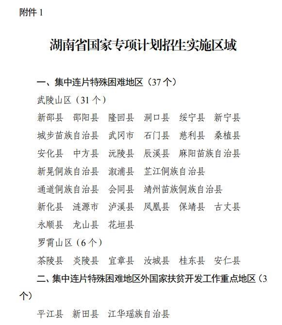 湖南:2018年重點(diǎn)高校專項(xiàng)計劃招生實(shí)施區(qū)域