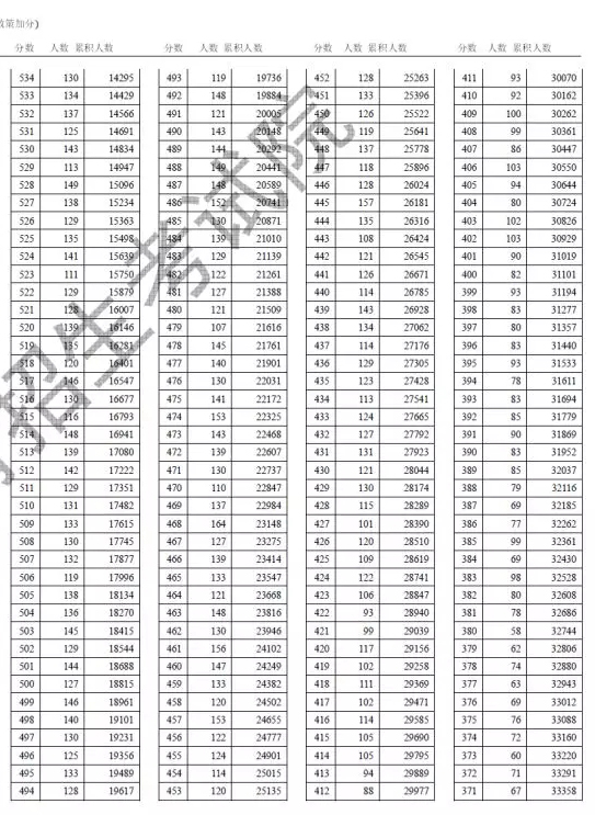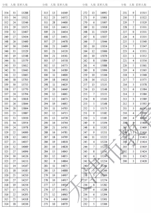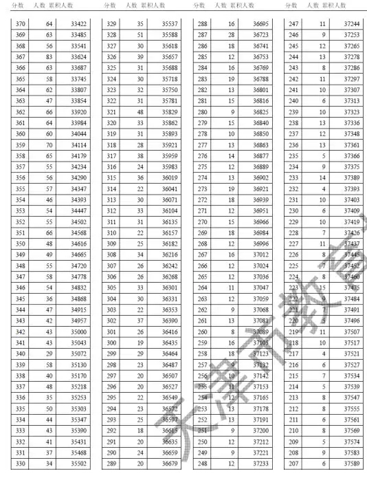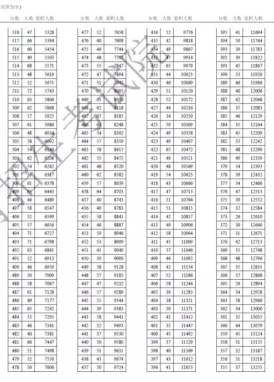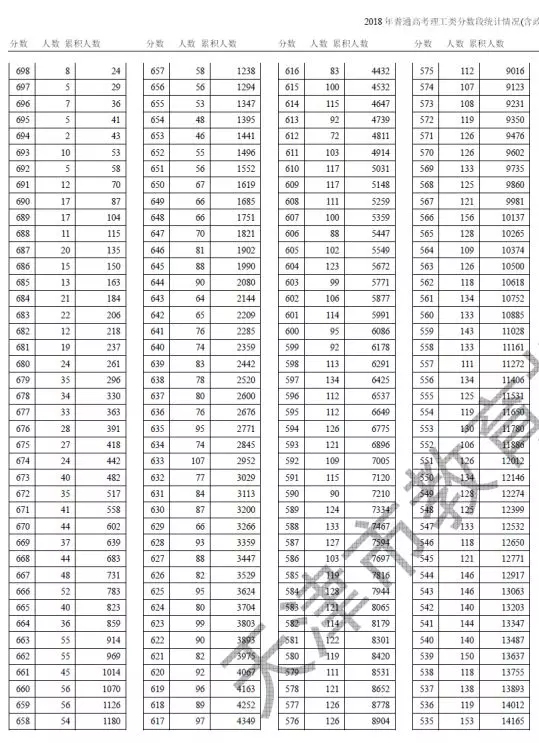 2018年天津高考理工類、文史類分?jǐn)?shù)段統(tǒng)計情況(含政策加分)