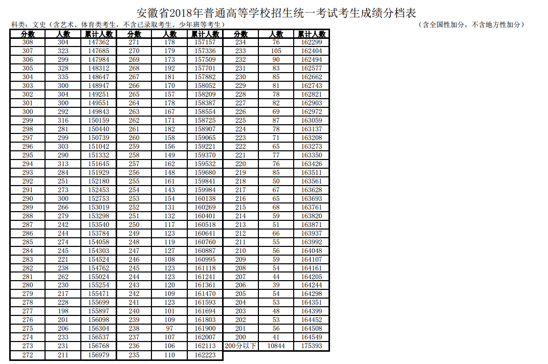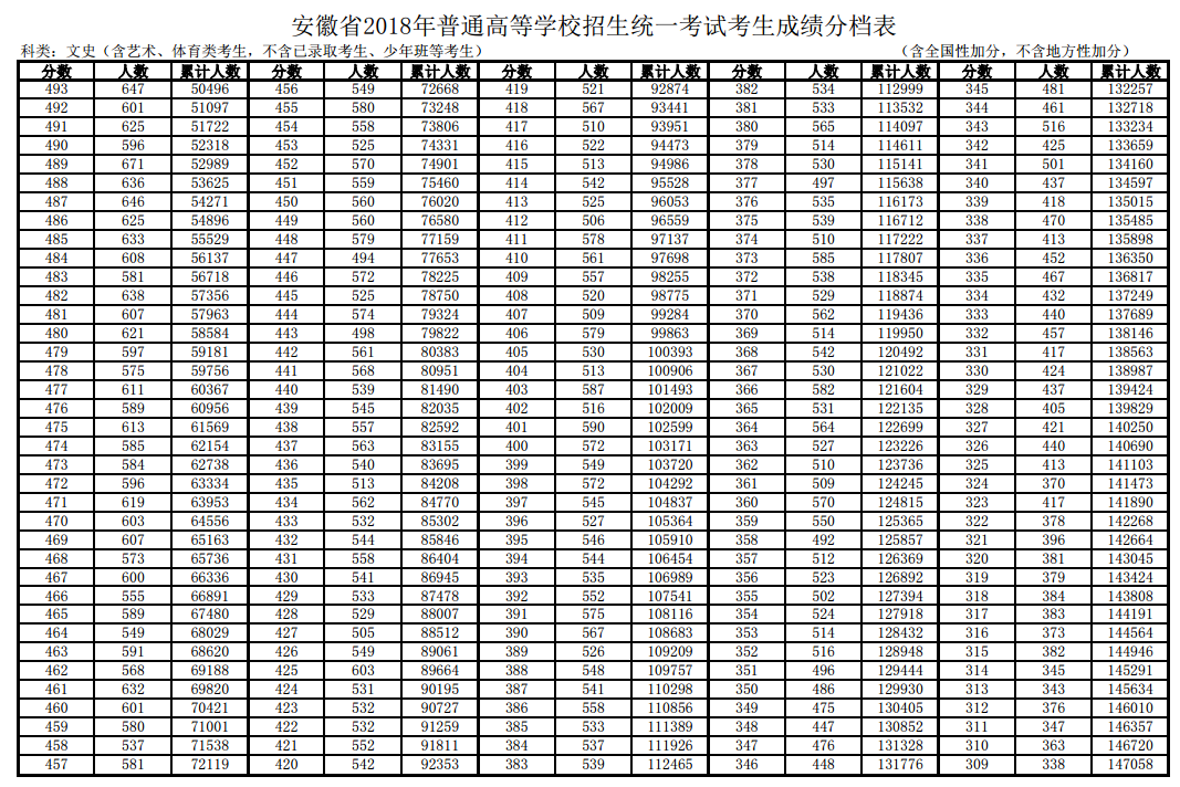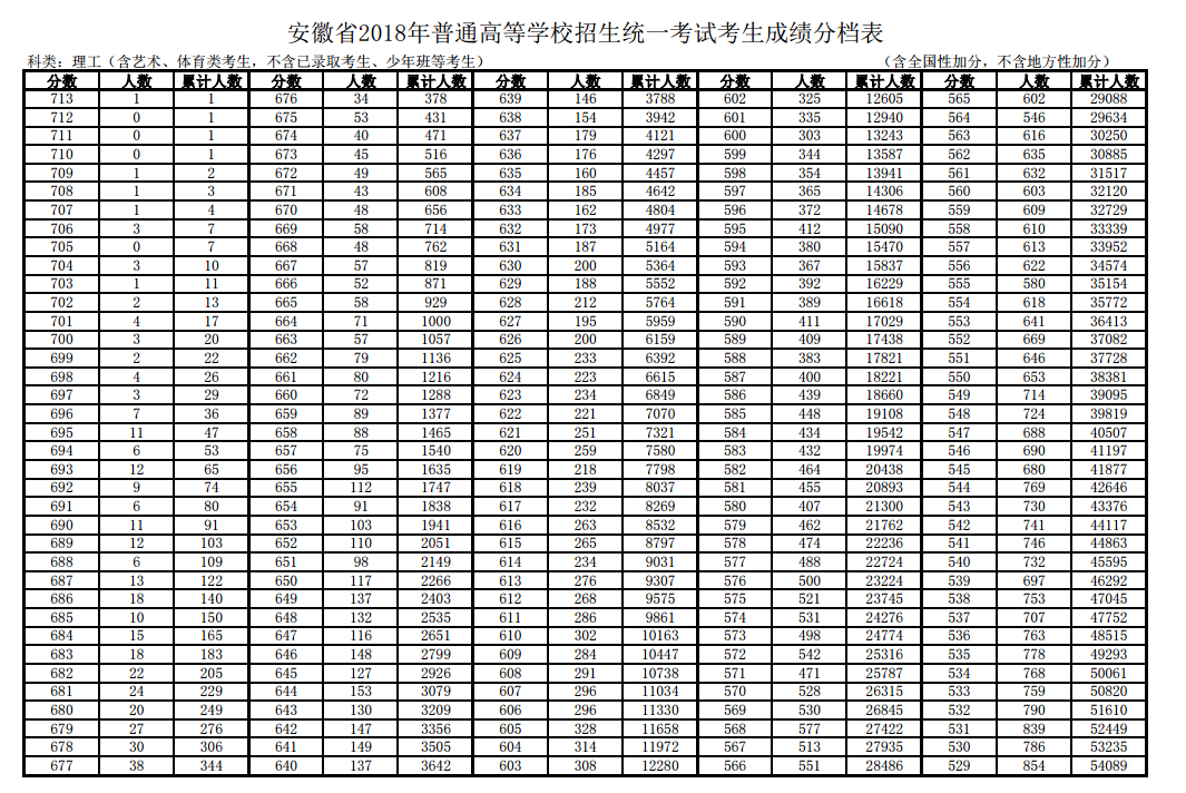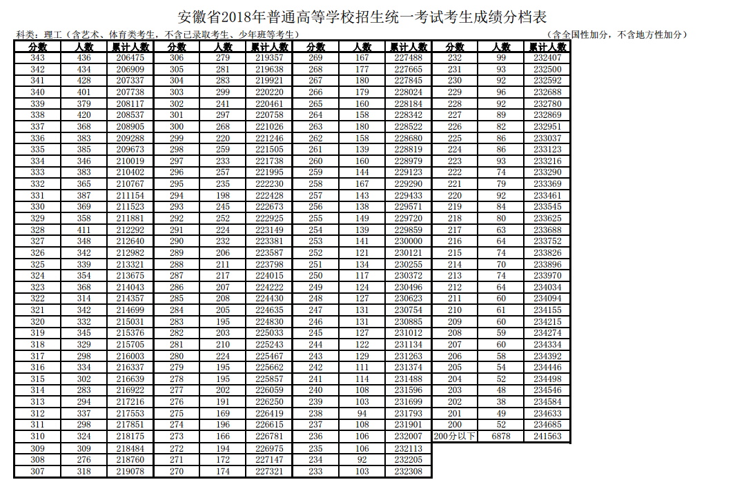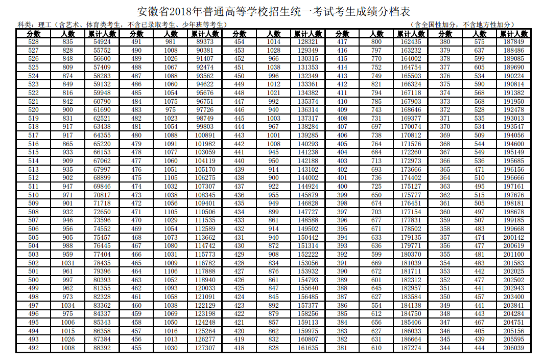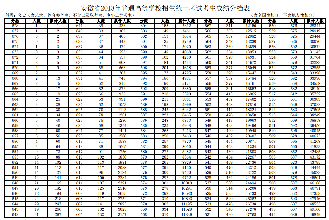 安徽2018年高考總分一分一段表