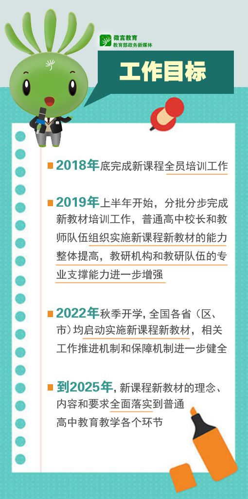 各地要認(rèn)真制訂宣傳工作方案,利用主流媒體和新媒體平臺,統(tǒng)籌做好新課程實(shí)施、高考綜合改革的宣傳,深入解讀闡釋改革的重要意義、目標(biāo)任務(wù)、政策措施和具體安排,努力營造社會各界廣泛理解、大力支持和積極參與的良好氛圍。