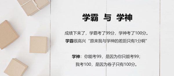 舉個(gè)通俗的例子來說,學(xué)生們之間總會(huì)傳說“XX是學(xué)霸”、“XX是學(xué)神”,二者的區(qū)別就在于潛能(潛在的能力,未顯的)。可能會(huì)有同學(xué)勤勤懇懇,認(rèn)真預(yù)復(fù)習(xí),認(rèn)真刷題,成為學(xué)業(yè)中的佼佼者,也即是“學(xué)霸”;但也會(huì)有同學(xué),你看他平時(shí)除了上課之外都不怎么學(xué)習(xí),但是做作業(yè)幾乎沒有阻礙,就是很順暢的完成難題,考試分?jǐn)?shù)也很理想,這樣的同學(xué)可能就是其他同學(xué)口中的“學(xué)神”。