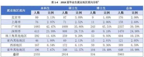 中山大學2018屆畢業(yè)生就業(yè)地區(qū)流向分析