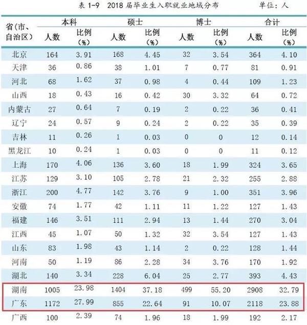 華南理工大學2018年畢業(yè)生留在廣東就業(yè)的比例高達85.5%,本科畢業(yè)生也有超過80%選擇留在廣東,而實際上華南理工大學的本科生廣東生源比例僅為52.5%。另一所一流大學中山大學的本科畢業(yè)生留在廣東的比例也接近八成。廣東也因此超過京滬成為留住本省一流大學學子最多的省份!