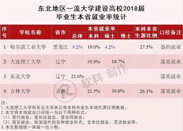 在東北的四所一流大學建設(shè)高校中,大連理工大學是唯一的本省就業(yè)率較高的大學,這主要歸功于它位于“濱城”大連。大連理工大學有35.85%的畢業(yè)生留在遼寧省就業(yè),而其中大連市就占了30.29%。
