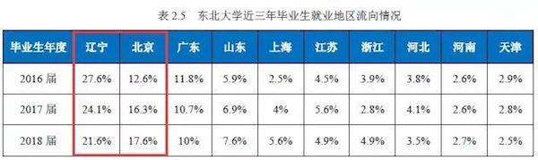 近三年來,位于遼寧的東北大學的畢業(yè)生本省就業(yè)率逐年下降。在遼寧就業(yè)的畢業(yè)生比例從27.6%下滑到21.6%,而選擇到北京打拼的畢業(yè)生越來越多,比三年前多了5%,可見人才流失問題嚴重。
