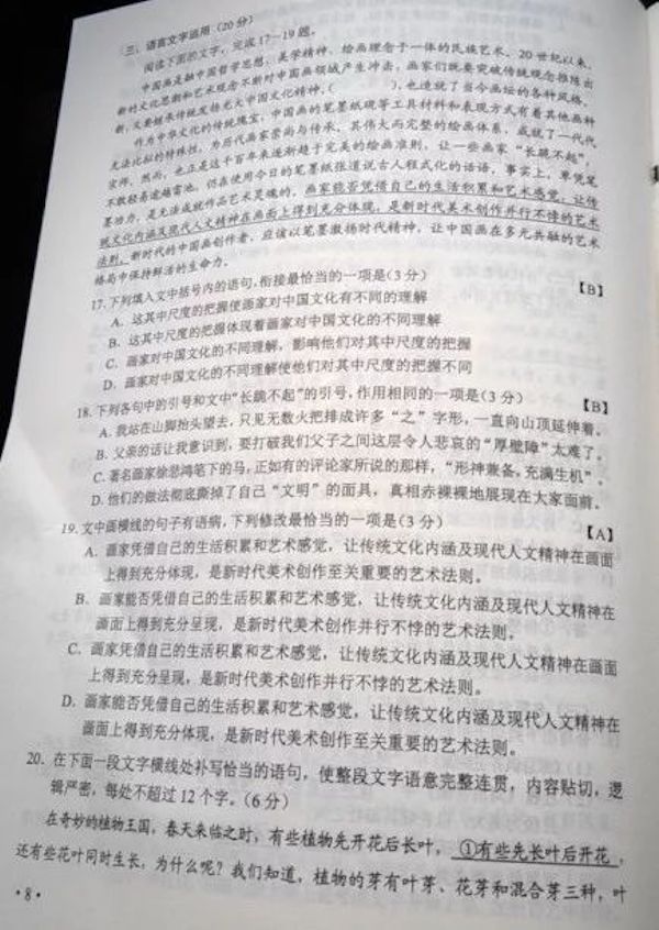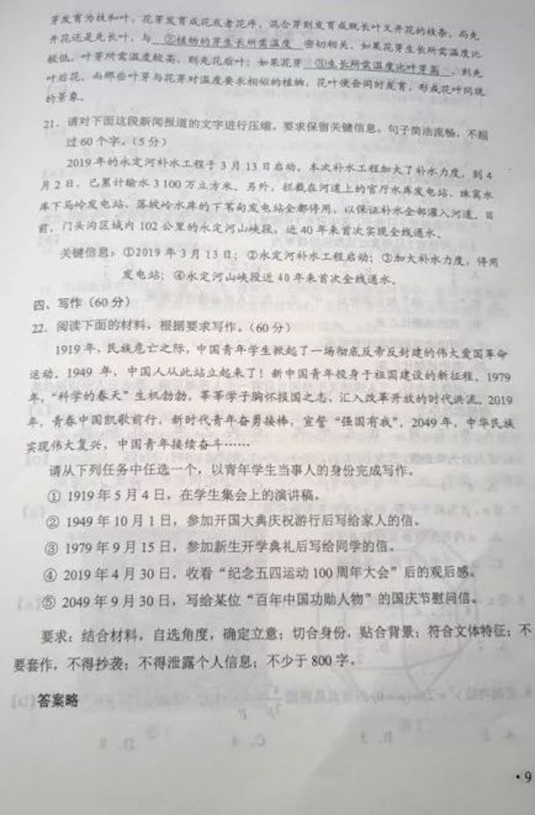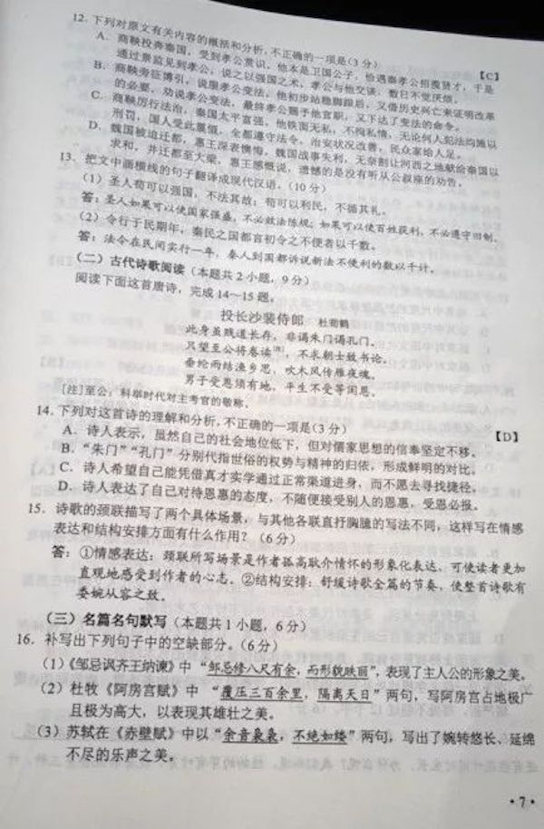 2019全國(guó)卷II·語文·標(biāo)準(zhǔn)答案