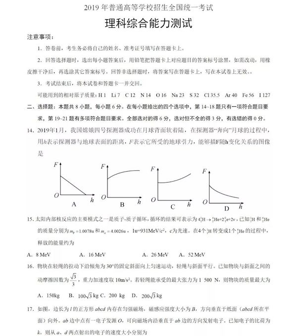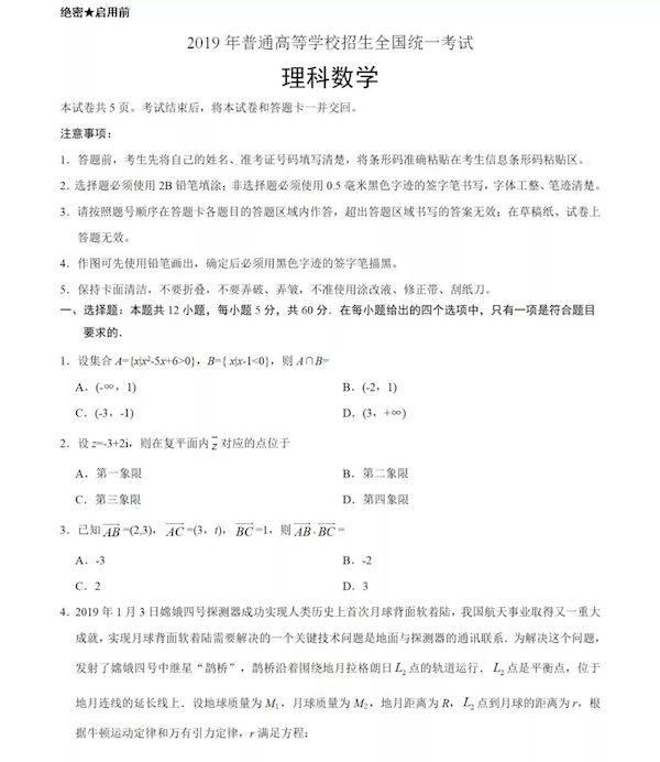 2019全國(guó)卷II·數(shù)學(xué)(理科)·原卷