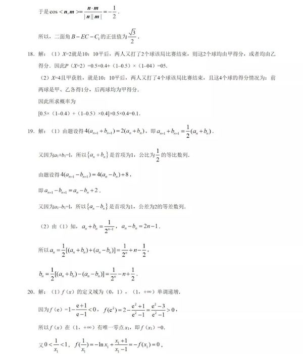 2019全國(guó)卷II·數(shù)學(xué)(理科)·參考答案