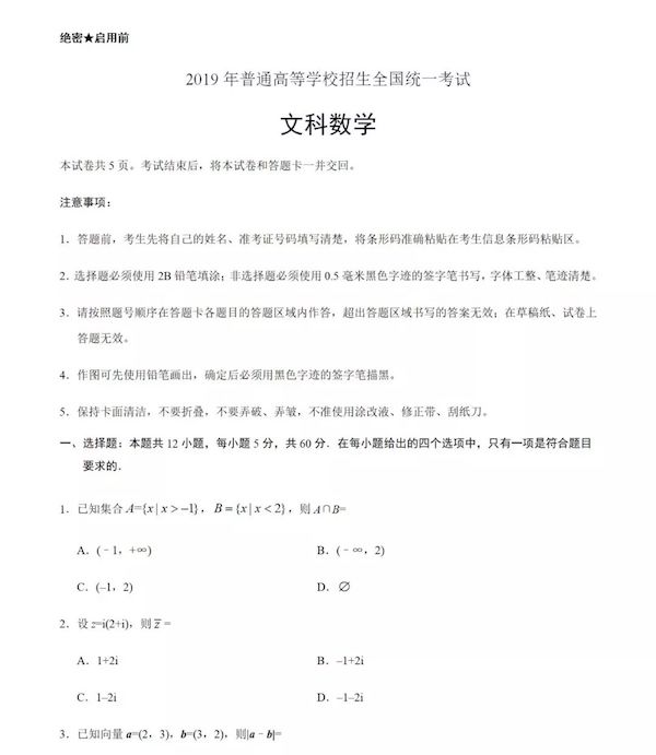 2019全國(guó)卷II·數(shù)學(xué)(文科)·原卷