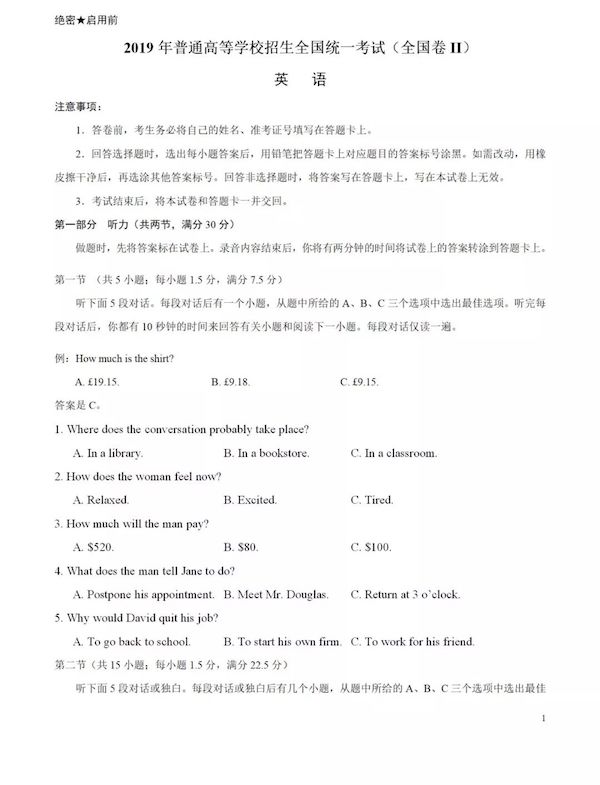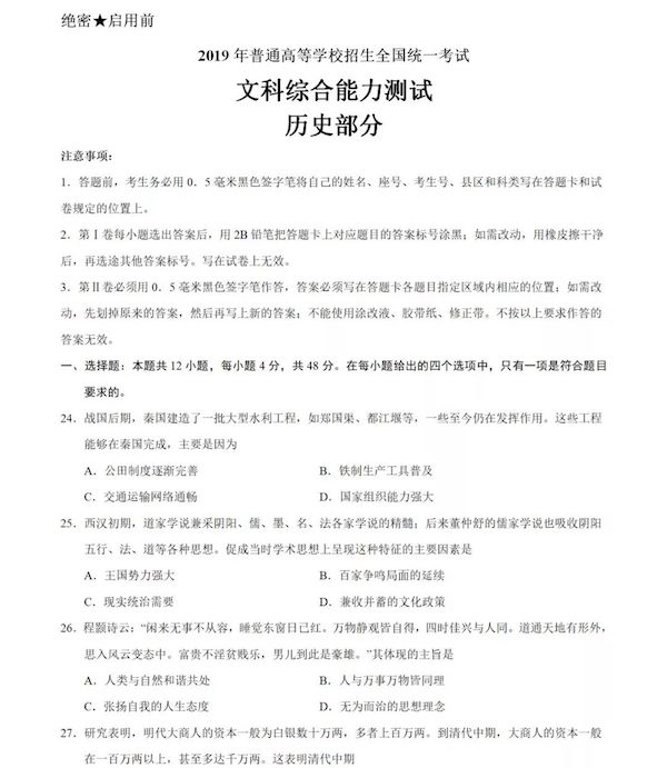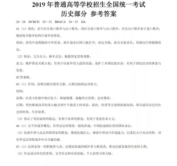 2019全國(guó)卷II·歷史·原卷及標(biāo)準(zhǔn)答案