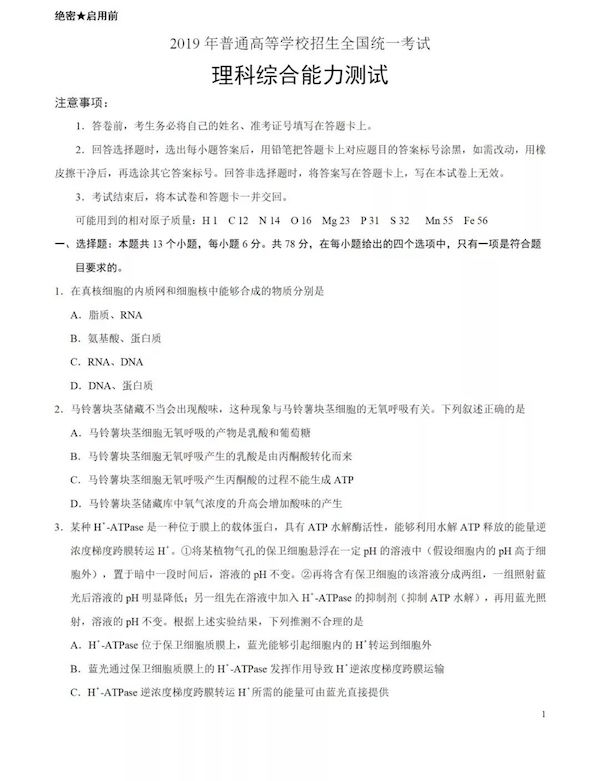 2019全國(guó)卷II·化學(xué)·原卷及標(biāo)準(zhǔn)答案