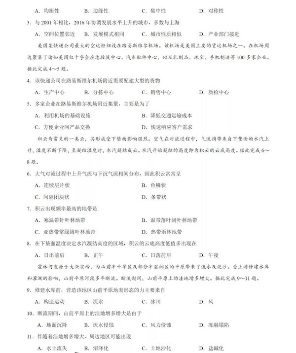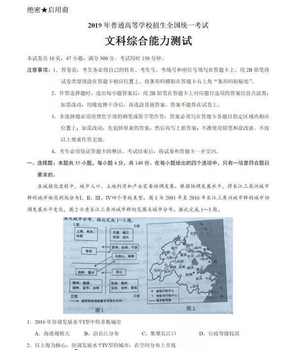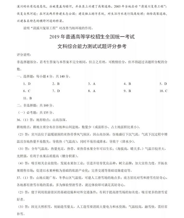 2019全國(guó)卷II·地理·原卷及標(biāo)準(zhǔn)答案