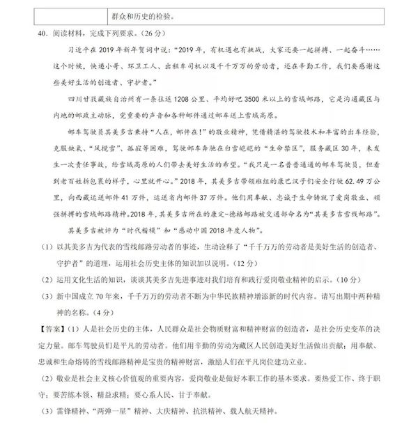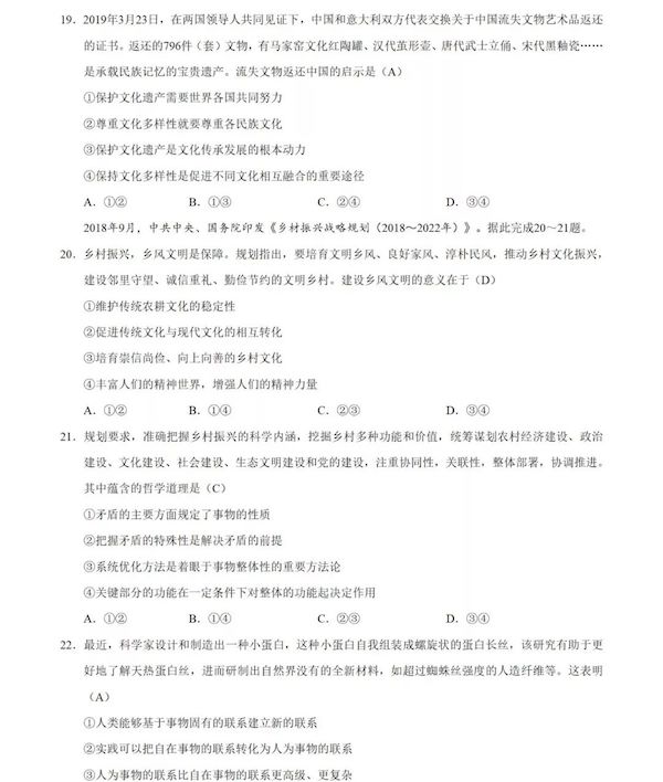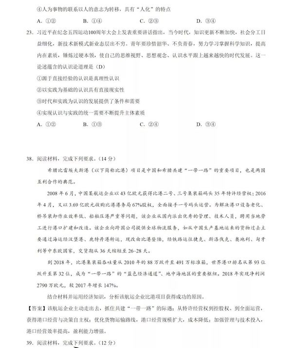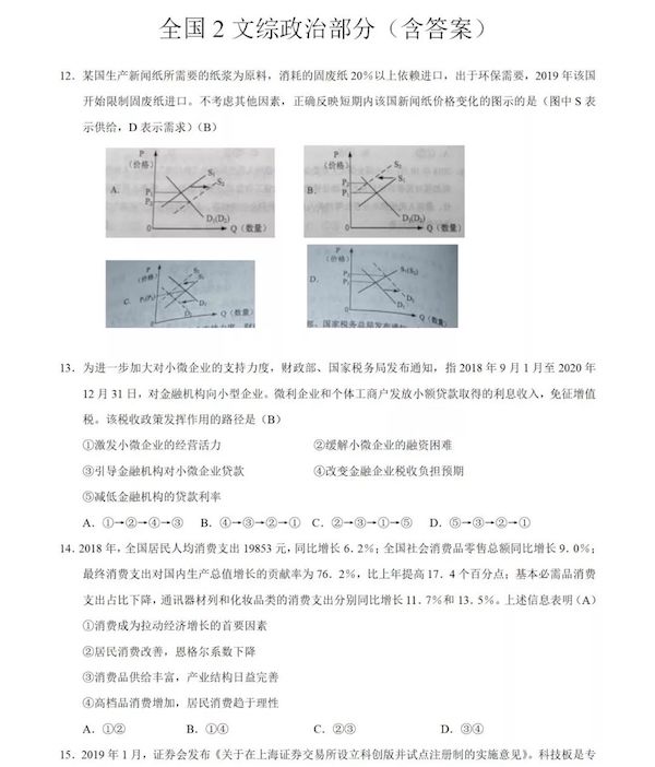 2019全國(guó)卷II·政治·原卷及標(biāo)準(zhǔn)答案