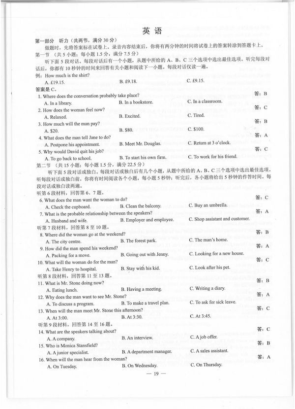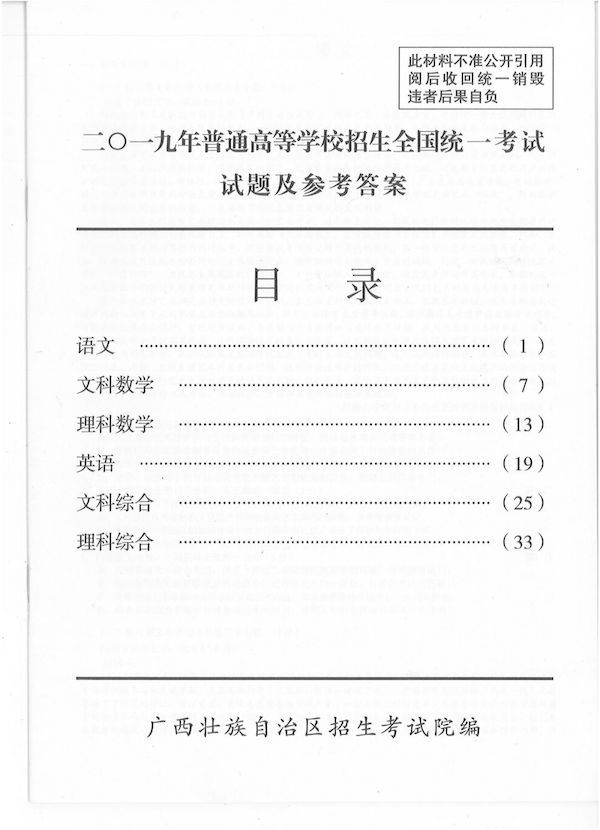 權(quán)威丨2019全國卷三各科原版試卷及參考答案發(fā)布(高清版)