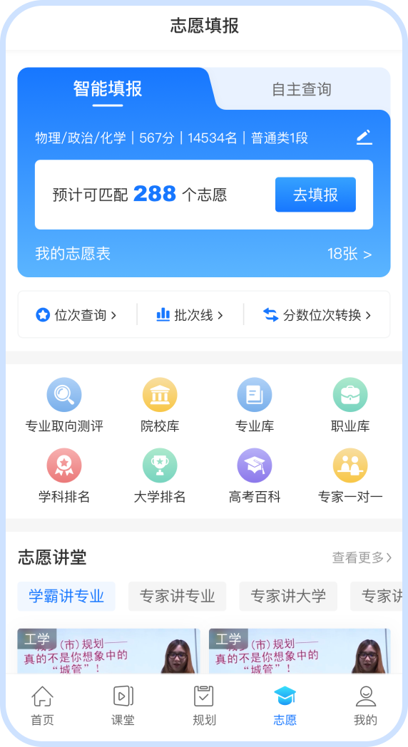1.填寫高考成績,智能估算可填報的志愿數(shù)量。
